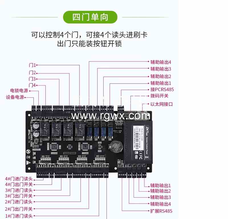 高級門禁控制器安裝圖以中控智慧ZKTeco為例門禁如下圖:
